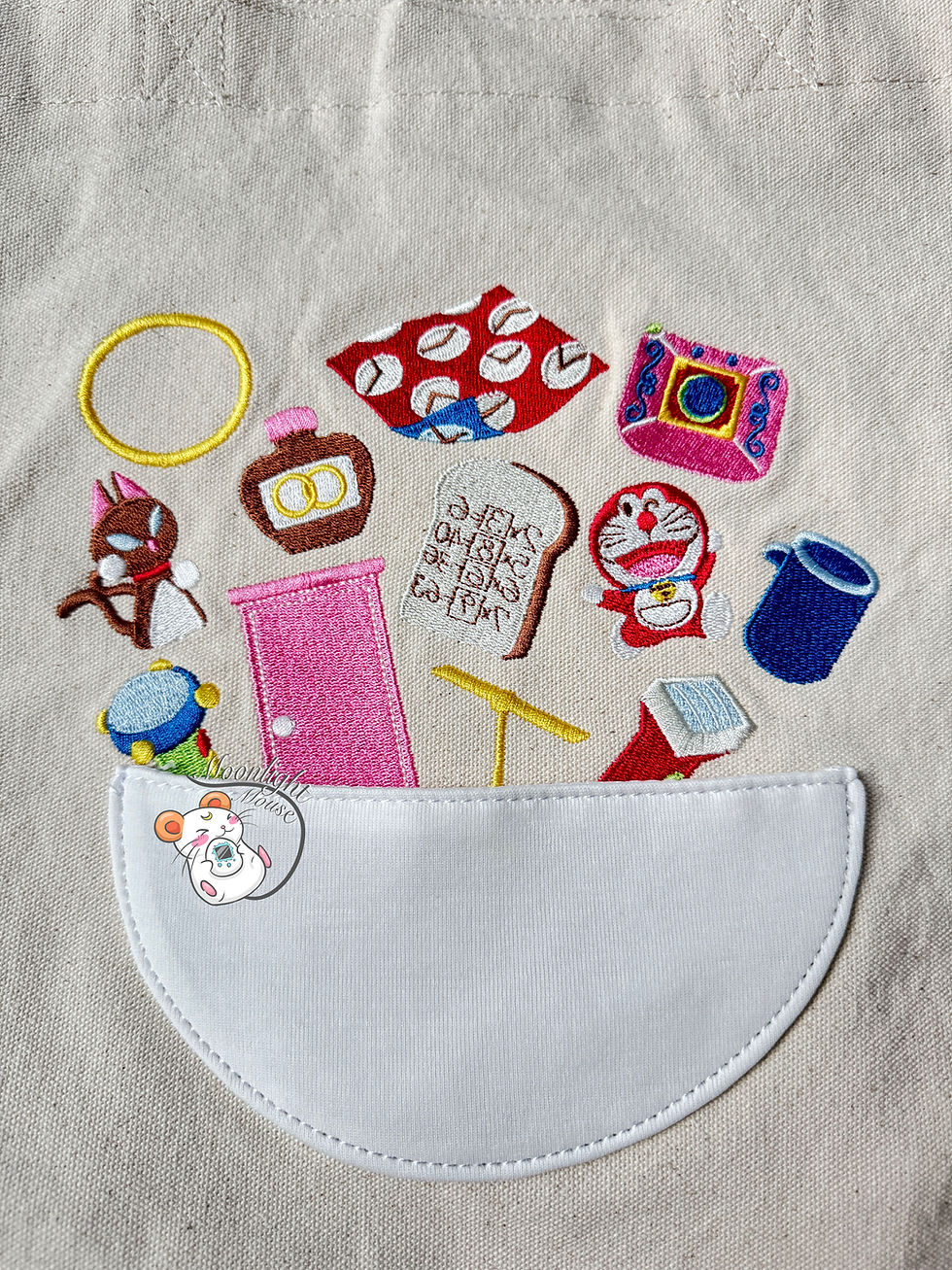 NWT Doraemon The Future Store Department Embroidered Tote Bag 4D Pocket 2025
